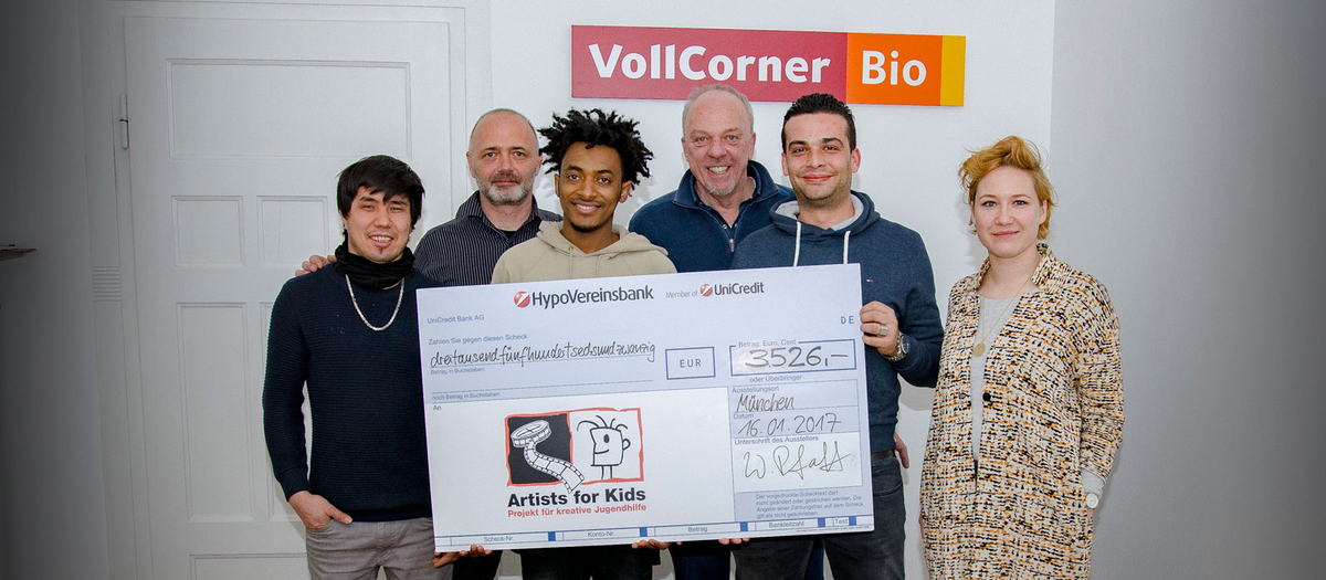 Zwölf sozial benachteiligte und geflüchtete Jugendliche haben im September 2016 bei VollCorner eine sozialpädagogisch begleitete Ausbildung als Verkäufer/in bzw. Einzelhandelskauffrau/-mann begonnen. Im Dezember konnten VollCorner Kunden das VollCorner Azubi-Projekt in allen 15 VollCorner Biomärkten aktiv unterstützen.