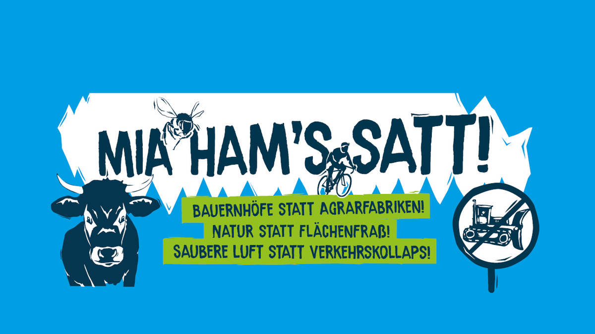 Wir erheben unsere Stimme für eine ökologische, tiergerechte und bäuerliche Landwirtschaft. Für saubere Luft, lebenswerte Städte und den Erhalt unserer vielfältigen Kultur- und Naturlandschaft in Bayern.