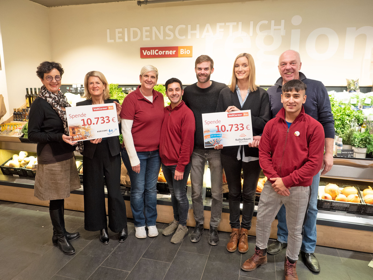 21.466 € jeweils zur Hälfte den beiden gemeinnützigen Vereinen Horizont e.V. und KulturRaum München e.V. zu überreichen und so bedürftigen MünchnerInnen unter die Arme zu greifen.